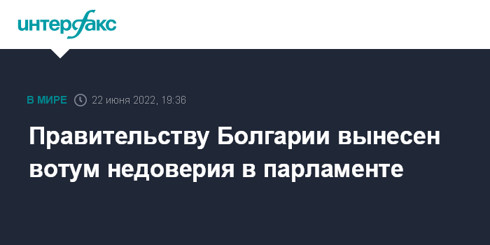 Москва. 22 июня. INTERFAX.RU - Болгарские парламентарии в среду выразили недоверие правительству Кирила Петкова, информирует Болгарское национальное телевидение.
