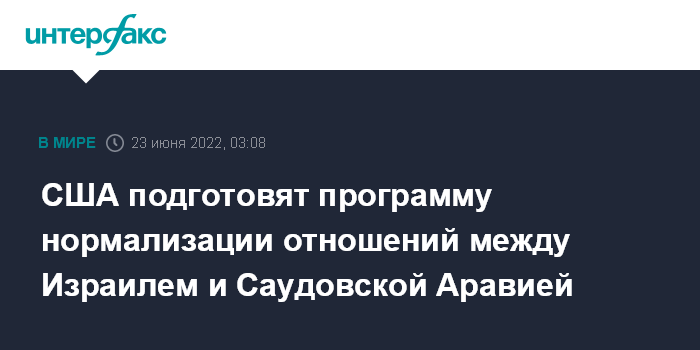 Москва. 23 июня. INTERFAX.RU - Администрация США готовит программу нормализации отношений между Израилем и Саудовской Аравией в преддверии визита на Ближний Восток американского президента Джо Байдена, сообщает Axios со ссылкой на ряд источников.