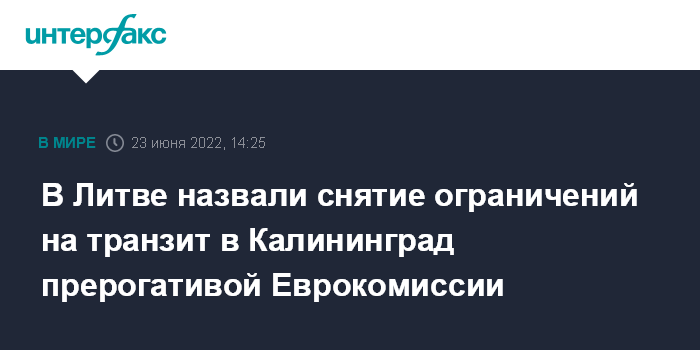 Москва. 23 июня. INTERFAX.RU - Европейская комиссия (ЕК) теоретически могла бы изменить свое мнение об ограничении калининградского транзита, эти решения находятся в руках самой комиссии, заявил министр иностранных дел Литвы Габриэлюс Ландсбергис.