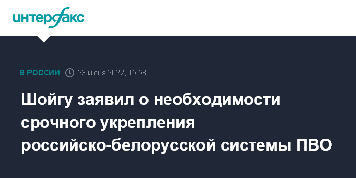 Москва. 23 июня. INTERFAX.RU - Региональная группировка войск и система ПВО Союзного государства России и Белоруссии нуждается в срочных мерах по повышению боеготовности, заявил министр обороны РФ Сергей Шойгу.