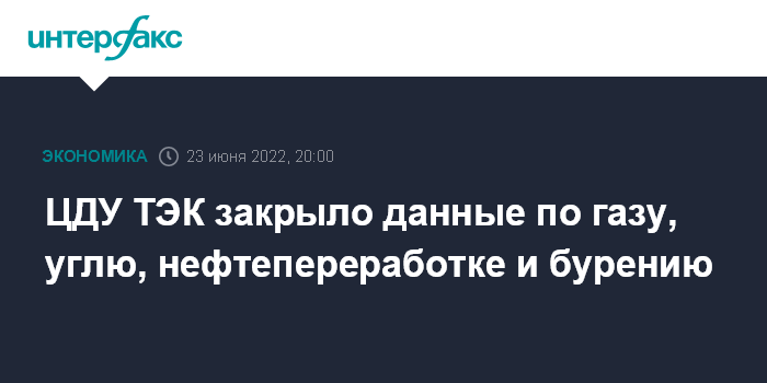 Москва. 23 июня. INTERFAX.RU - ЦДУ ТЭК, филиал ФГБУ "РЭА" Минэнерго России, с 24 июня прекратило предоставление ряда информационных ежемесячных продуктов на неопределенный срок.