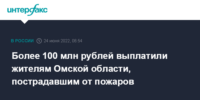 Москва. 24 июня. INTERFAX.RU - Власти Омской области выплатили более 100 млн рублей жителям региона, потерявшим жилье во время сильных пожаров в начале мая, сообщает пресс-служба правительства региона со ссылкой на губернатора Александра Буркова.