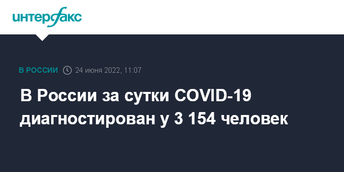 Москва. 24 июня. INTERFAX.RU - Суточный прирост новых заболевших коронавирусной инфекцией в РФ превысил 3 154 случая, следует из данных оперативного штаба, обнародованных в пятницу.