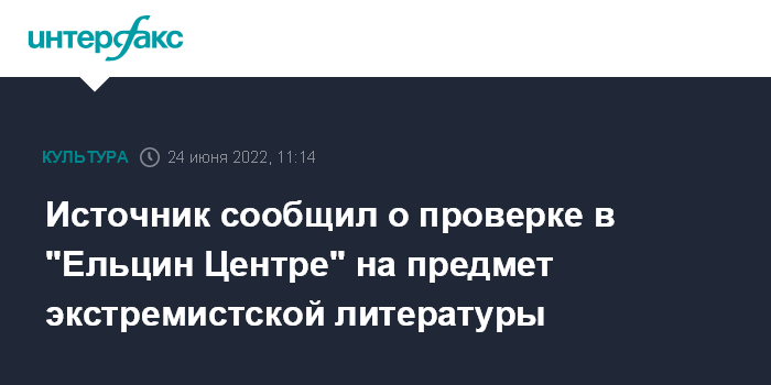 По словам источника, в том числе в президентском центре может распространяться экстремистская литература, изъятая накануне в екатеринбургской общественной организации "Мемориал" (внесен Минюстом РФ в реестр НКО-иноагентов и ликвидирован).