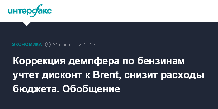 Коррекция демпфера по бензинам учтет дисконт к Brent, снизит расходы бюджета. Обобщение