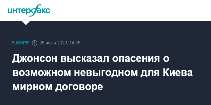 Москва. 25 июня. INTERFAX.RU - Экономические последствия событий на Украине в Европе могут вызвать давление на Киев с целью убедить его заключить мирный договор с РФ, не отвечающий интересам украинской стороны, заявил в субботу премьер Британии Борис Джонсон.