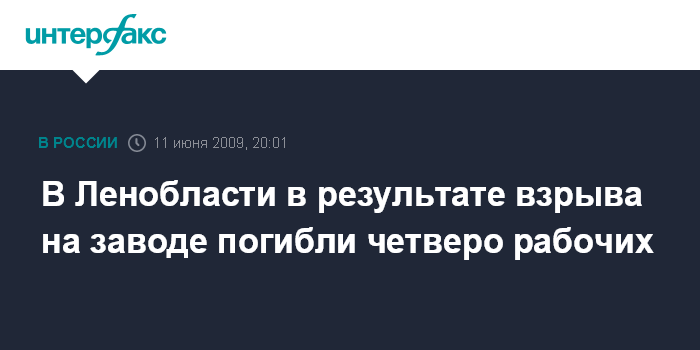 Санкт-Петербург. 11 июня. INTERFAX.RU - Во Всеволожском районе Ленинградской области на промышленной площадке произошел взрыв, погибли четверо человек, сообщили "Интерфаксу" в ГУ МЧС по Ленобласти.