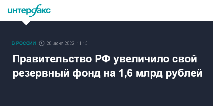 Правительство РФ увеличило свой резервный фонд на 1,6 млрд рублей
