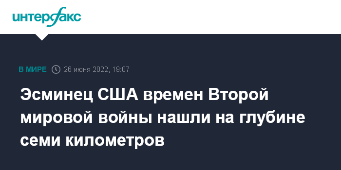 Эсминец США времен Второй мировой войны нашли на глубине семи километров