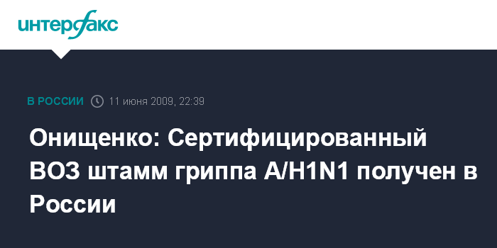 Онищенко: Сертифицированный ВОЗ штамм гриппа А/H1N1 получен в России