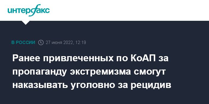 Ранее привлеченных по КоАП за пропаганду экстремизма смогут наказывать уголовно за рецидив