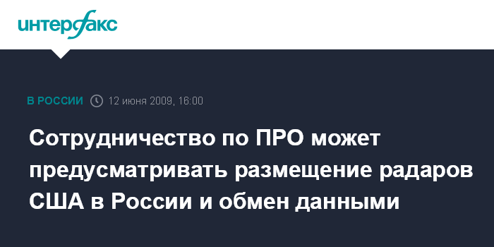 Москва. 12 июня. INTERFAX.RU - США проявляют интерес к сотрудничеству с Россией по противоракетной обороне в отношении угроз, исходящих со стороны третьих стран, заявил в четверг "Интерфаксу" высокопоставленный источник в американской администрации.