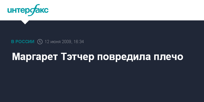 Москва. 12 июня. INTERFAX.RU - Бывшему премьер-министру Великобритании, баронессе Маргарет Тэтчер оказали медицинскую помощь в связи с травмой плеча, сообщила в пятницу британская телерадиокорпорация Би-Би-Си.
