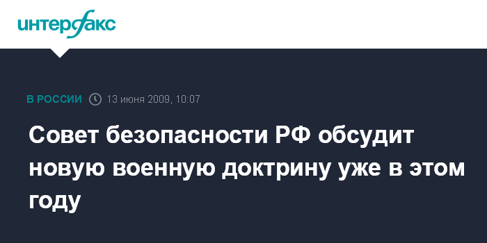 Москва. 13 июня. INTERFAX.RU - Разработка новой военной доктрины РФ завершится в этом году, документ будет вынесен на обсуждение Совета безопасности, сообщил "Интерфаксу" источник в Совбезе РФ.