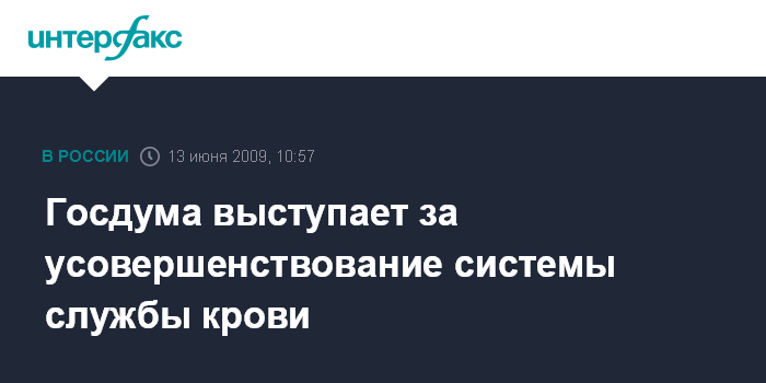 Москва. 13 июня. UBTERFAX.RU - Председатель комитета Госдумы по охране здоровья Ольга Борзова заявила о необходимости ускорить принятие технического регламента "О требованиях к безопасности крови, ее продуктов, кровезамещающих растворов и технических средств, используемых в трансфузионно-инфузионной терапии".