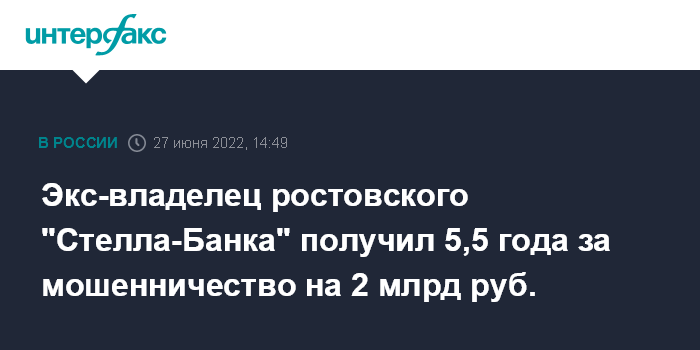 Экс-владелец ростовского "Стелла-Банка" получил 5,5 года за мошенничество на 2 млрд руб.