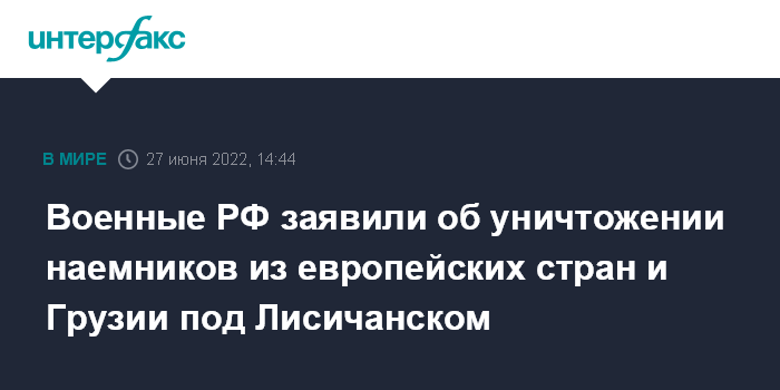 Военные РФ заявили об уничтожении наемников из европейских стран и Грузии под Лисичанском