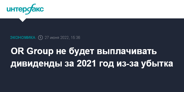 OR Group не будет выплачивать дивиденды за 2021 год из-за убытка
