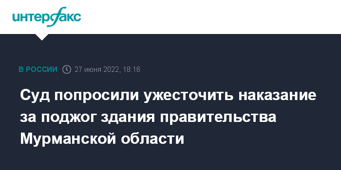 Суд попросили ужесточить наказание за поджог здания правительства Мурманской области