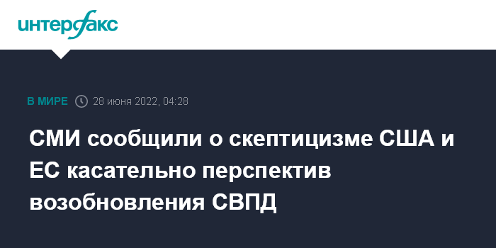 СМИ сообщили о скептицизме США и ЕС касательно перспектив возобновления СВПД