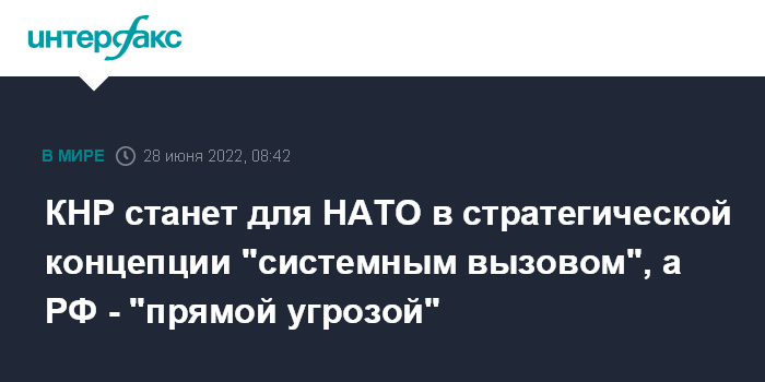 КНР станет для НАТО в стратегической концепции "системным вызовом", а РФ - "прямой угрозой"