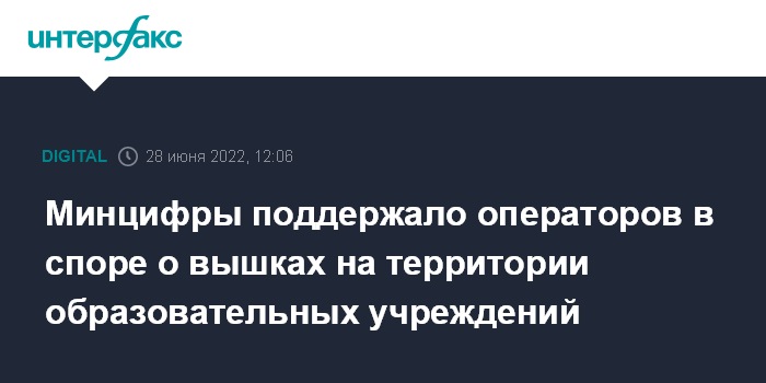 "28 апреля Минцифры получило заключение РАН об отсутствии научных обоснований введения запрета на размещение базовых станций на территории образовательных организаций. В мае и июне Минцифры, Роспотребнадзор и операторы связи уточнили перечень базовых станций, размещенных на территории школ", - говорится в сообщении ведомства.