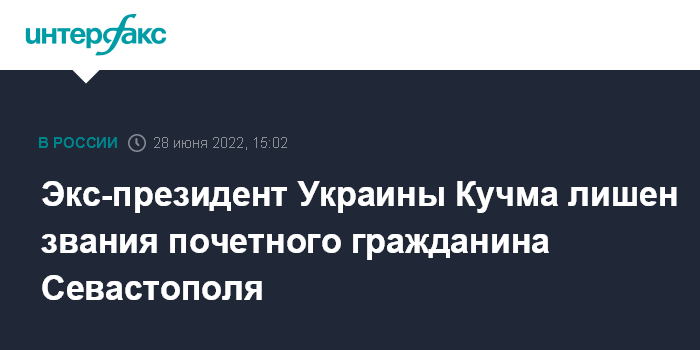 Москва. 28 июня. INTERFAX.RU - Депутаты Законодательного собрания Севастополя на заседании во вторник лишили бывшего президента Украины Леонида Кучму звания почетного гражданина города.