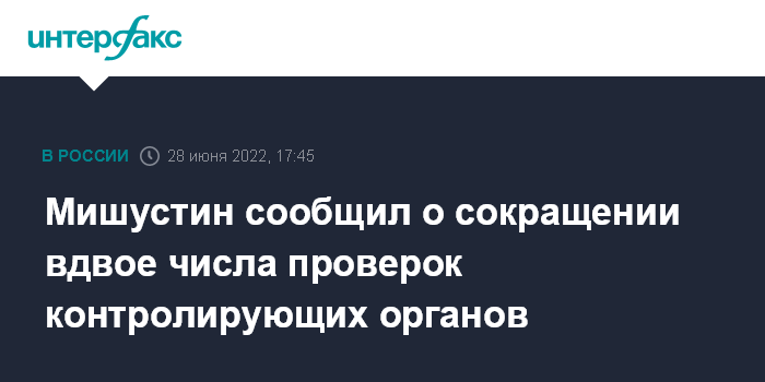 Москва. 28 июня. INTERFAX.RU - Число проверок со стороны контрольно-надзорных органов за три года сократилось вдвое, сообщил премьер-министр Михаил Мишустин.