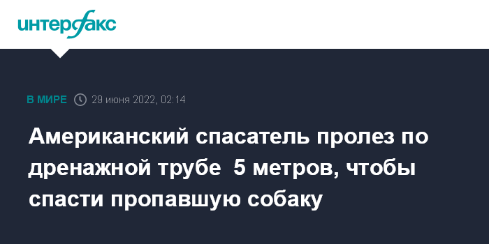 Американский спасатель пролез по дренажной трубе 5 метров, чтобы спасти пропавшую собаку