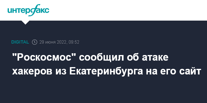 Москва. 29 июня. INTERFAX.RU - Сайт "Роскосмоса" атакован хакерами из Екатеринбурга, сообщил в Telegram руководитель пресс-службы госкорпорации Дмитрий Струговец.