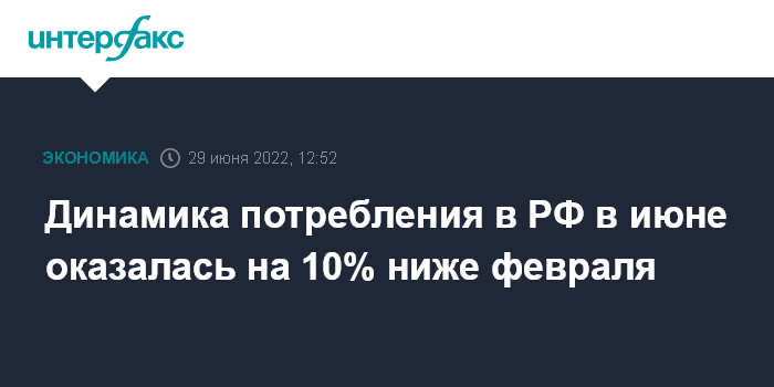 Динамика потребления в РФ в июне оказалась на 10% ниже февраля