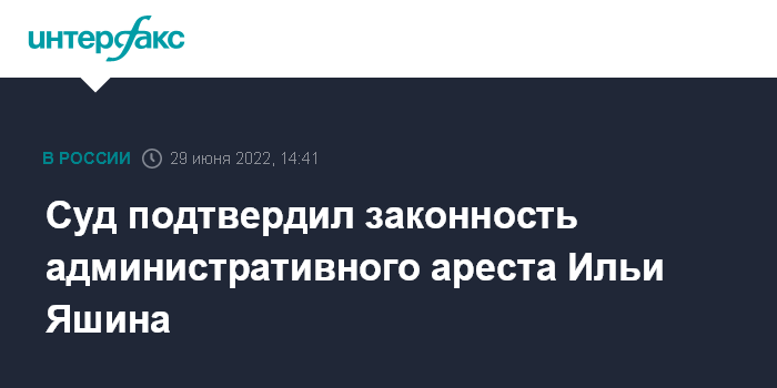Москва. 29 июня. INTERFAX.RU - Мосгорсуд отклонил апелляцию на решение назначить 15 суток ареста муниципальному депутату Красносельского района Илье Яшину, сообщили "Интерфаксу" в пресс-службе суда.