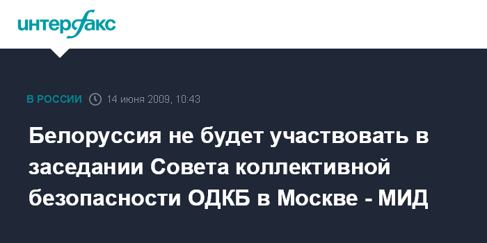 Белоруссия не будет участвовать в заседании Совета коллективной безопасности ОДКБ в Москве - МИД