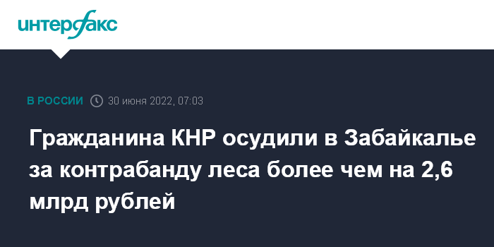 Как сообщалось, в мае текущего года был вынесен приговор еще одному организатору контрабанды леса в КНР. Жительница Читы по совокупности преступлений (контрабанда, организация преступного сообщества, отмывание денег) приговорена к семи годам колонии общего режима и штрафу в пять млн рублей. Отбывание наказания осужденной отсрочено в связи с ее беременностью. По иску заместителя Восточно-Сибирского транспортного прокурора с осужденной будет взыскано почти 87,4 млн рублей.