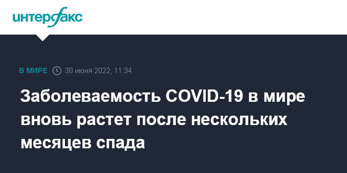 Москва. 30 июня. INTERFAX.RU - Уровень заболеваемости коронавирусом за прошедшую неделю вырос в мире на 18%, говорится в еженедельном эпидемиологическом бюллетене Всемирной организации здравоохранения (ВОЗ).