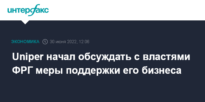 В пресс-релизе также отмечается, что энергохолдинг обсуждает с властями Германии меры поддержки его бизнеса в связи с ограничением поставок газа "Газпромом". Среди обсуждаемых мер - увеличение кредитных линий в германском банке развития KfW, а также инвестиции в акционерный капитал Uniper.