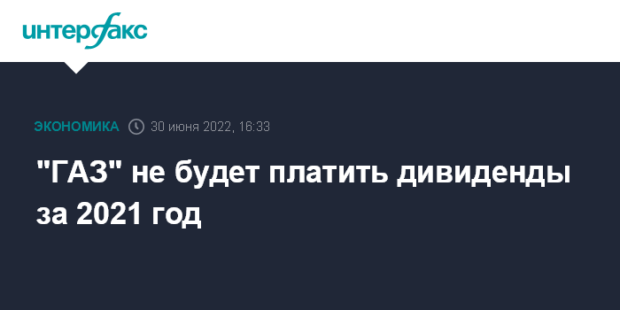 Москва. 30 июня. INTERFAX.RU - Акционеры ПАО "ГАЗ" на годовом собрании 29 июня утвердили рекомендацию совета директоров группы не выплачивать дивиденды за 2021 год, сообщила компания.