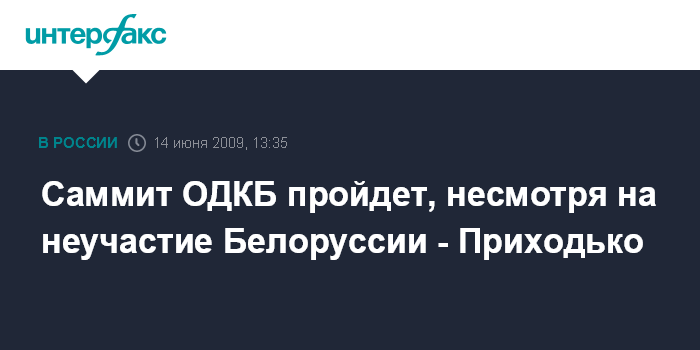 Москва. 14 июня. INTERFAX.RU - Саммит ОДКБ состоится, несмотря на то, что президента Белоруссии в нем не будет, сообщил в воскресенье журналистам помощник президента РФ Сергей Приходько.