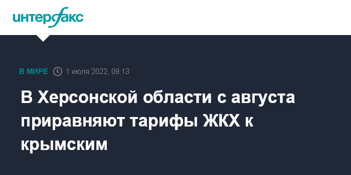 В Херсонской области с августа приравняют тарифы ЖКХ к крымским