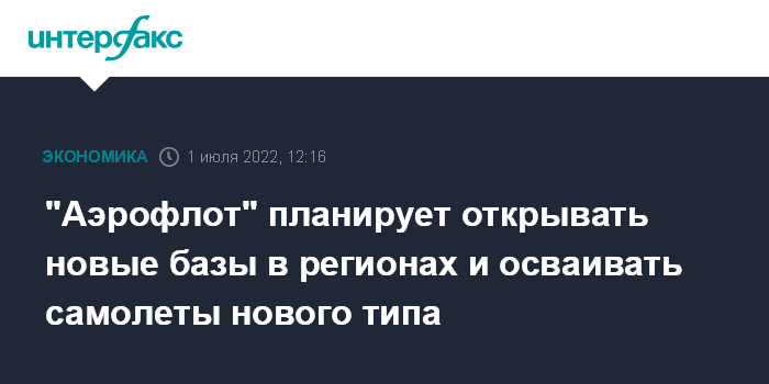 Москва. 1 июля. INTERFAX.RU - "Аэрофлот" планирует открывать новые авиационные базы в регионах, сообщил гендиректор авиакомпании Сергей Александровский на итоговом заседании коллегии Минтранса.