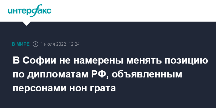 Москва. 1 июля. INTERFAX.RU - Исполняющий обязанности премьер-министра Болгарии Кирил Петков в пятницу заявил, что не изменит решения об объявлении персонами нон грата 70 российских дипломатов и административно-технических сотрудников посольства России в Софии, сообщает Болгарское национальное радио.
