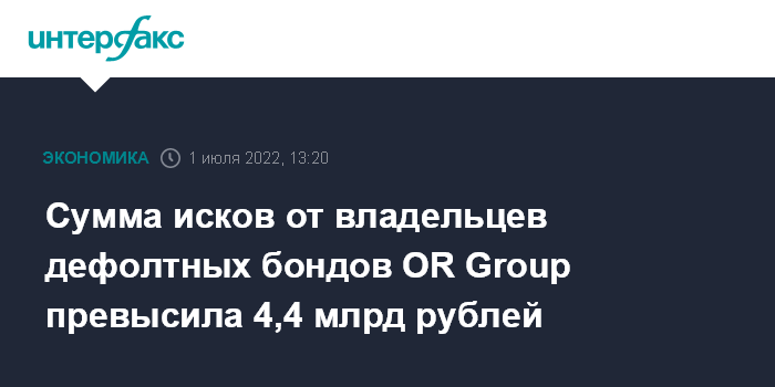 Сумма исков от владельцев дефолтных бондов OR Group превысила 4,4 млрд рублей
