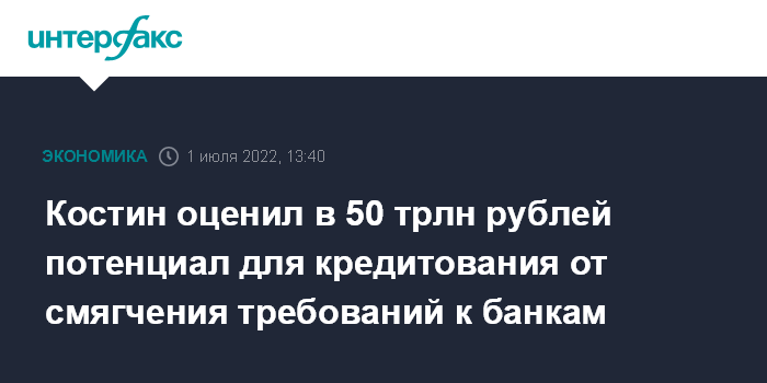 Костин оценил в 50 трлн рублей потенциал для кредитования от смягчения требований к банкам