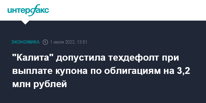 "Калита" допустила техдефолт при выплате купона по облигациям на 3,2 млн рублей