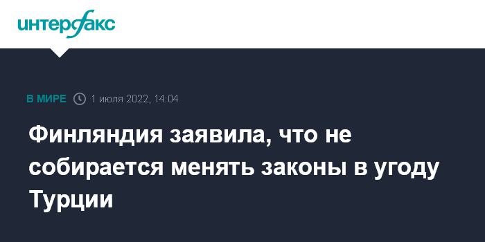 "Если условием ратификации Турцией членства Финляндии в НАТО станет изменение нашего законодательства, Финляндия вряд ли пойдет на такие уступки", - сказал Хаависто в пятницу телерадиокомпании Yle.