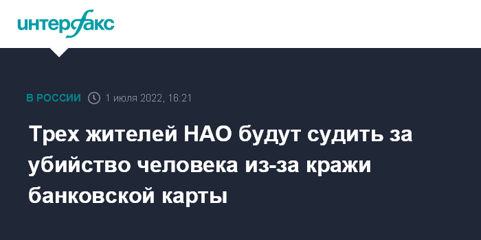 Трех жителей НАО будут судить за убийство человека из-за кражи банковской карты