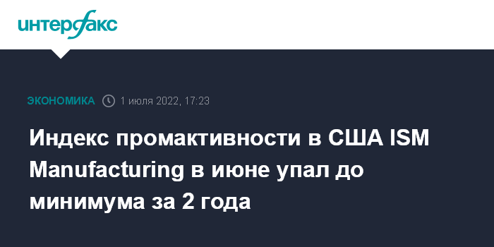 Индекс промактивности в США ISM Manufacturing в июне упал до минимума за 2 года