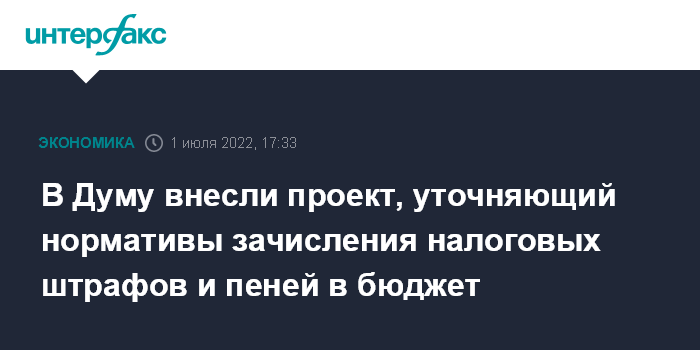 В Думу внесли проект, уточняющий нормативы зачисления налоговых штрафов и пеней в бюджет