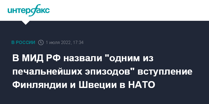 В МИД РФ назвали "одним из печальнейших эпизодов" вступление Финляндии и Швеции в НАТО