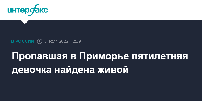 Пропавшая в Приморье пятилетняя девочка найдена живой